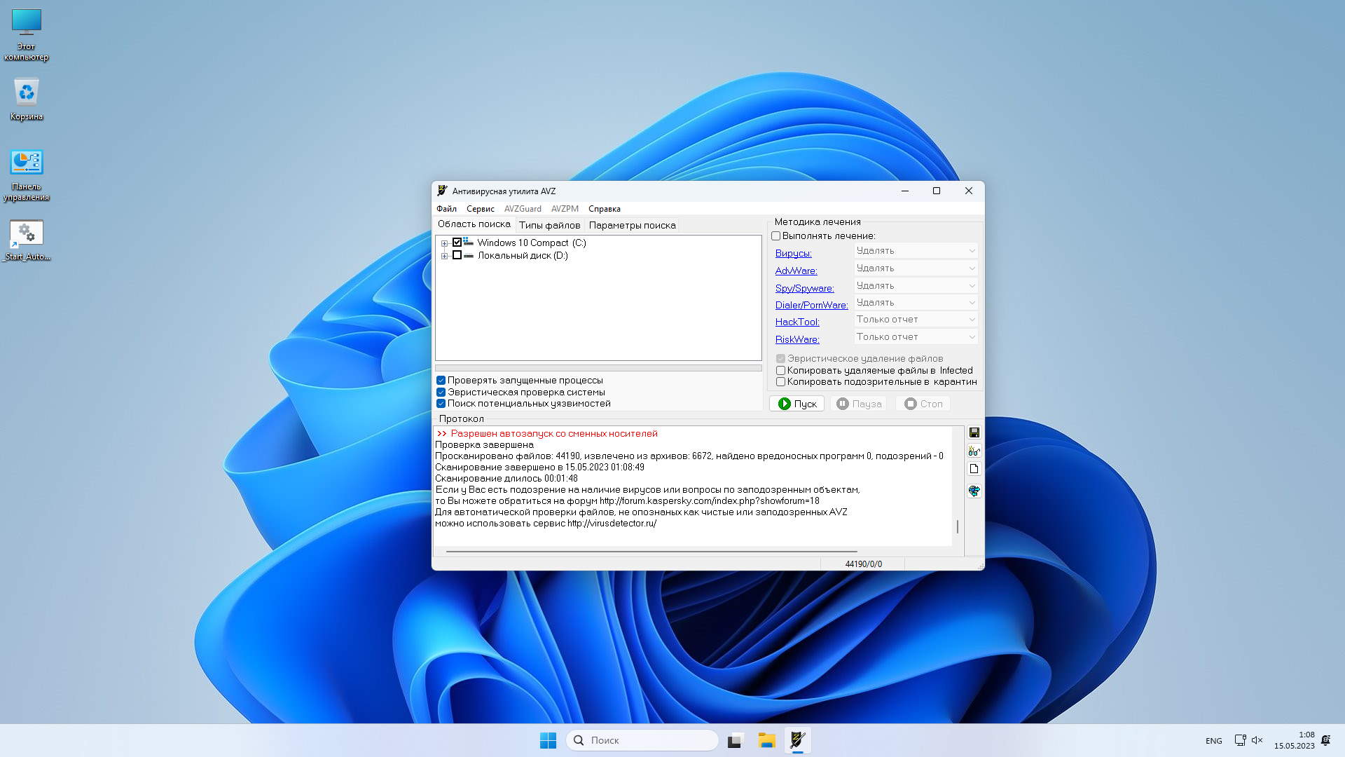 | AVZ | Найдено вредоносных программ: 0 |